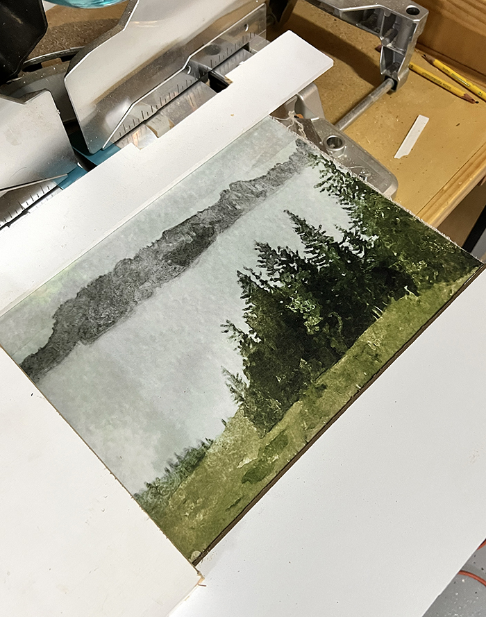 I used my miter saw to trim this picture. The initial cut was done lengthwise, removing some tall pine trees on the right. Who would have guessed I needed to bust this out for a print!